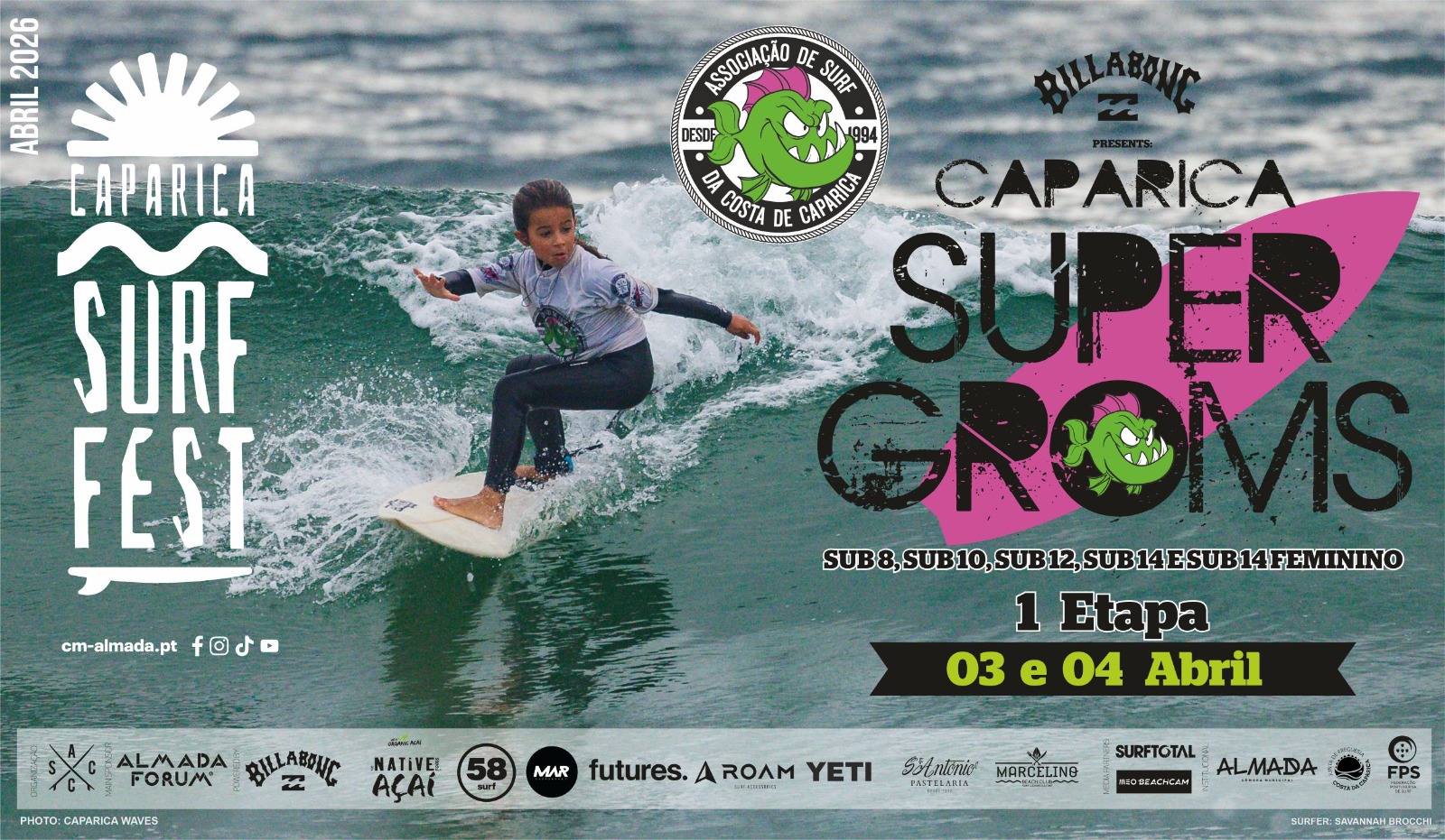 O futuro do surf nacional entra em cena já nos dias 3 e 4 de abril, com a realização da 1.ª etapa do Circuito ASCC Super Groms 2026, sponsored by Almada Forum, presented by Billabong e powered by Native Açaí.